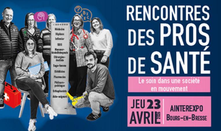 A vos agendas ! Le Département de l'Ain et les acteurs de la santé (hôpitaux publics et privés, Conseils de l'ordre des médecins, des infirmiers, des sage-femmes, des kinés, des dentistes, le SDIS, la CPAM, l'ARS...) organisent la 2e édition des Rencontres des pros de santé le jeudi 23 avril 2026, à Ainterexpo, Bourg-en-Bresse.
