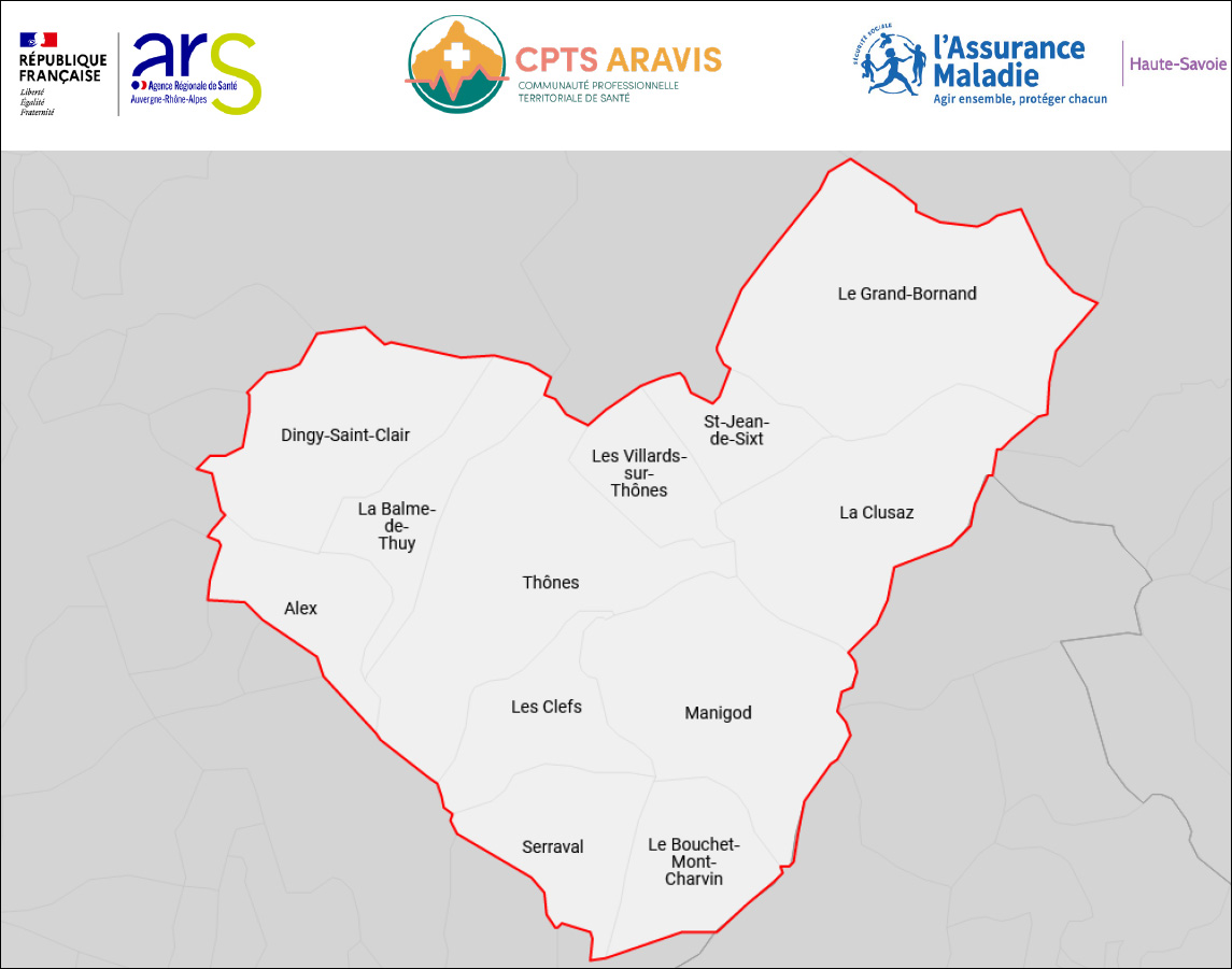 La CPTS couvre 18 581 habitants répartis sur Thônes, La Clusaz, Le Grand-Bornand, Saint-Jean-de-Sixt, Dingy-Saint-Clair, Alex, Les Villards-sur-Thônes, Manigod, Serraval, Les Clefs, La Balme-de-Thuy et Le Bouchet-Mont-Charvin.