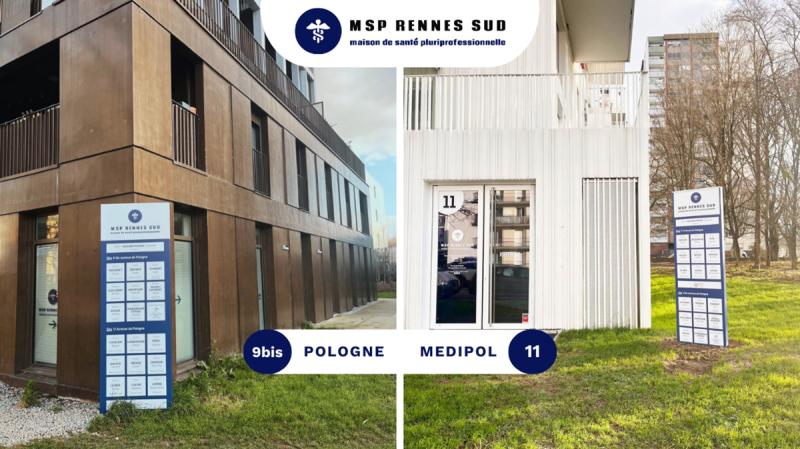La Maison de Santé est répartie sur deux sites à Rennes, dans des bâtiments côte à côte situés 9 bis et 11 avenue de Pologne.